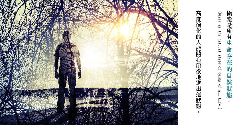是的,那正是我所說的。極樂是所有生命存在的自然狀態,而所有生命形式都回歸到它(Bliss is the natural state of being of all Life, all Life Forms return to it.)。高度演化的生命形式能隨心所欲地進出這種狀態。
