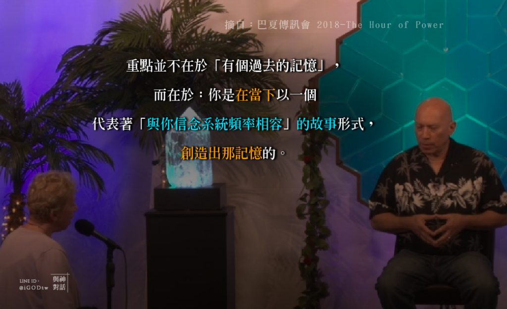 而在於:你是在當下以一個代表著「與你信念系統頻率相容」的故事形式,創造出(那記憶)的。