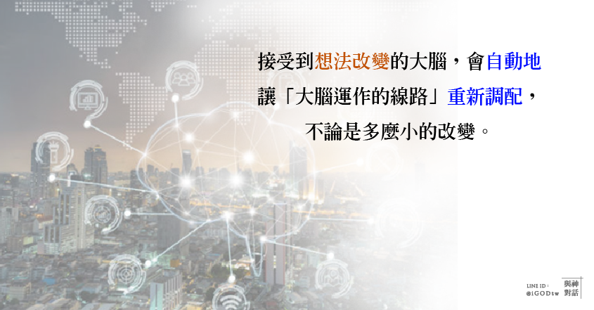 每個想法的改變,都會讓「大腦運作的線路」重新調配,不論是多麼小的改變,都會名符其實地、實際具體地重新調配大腦細胞分裂的初期配對。