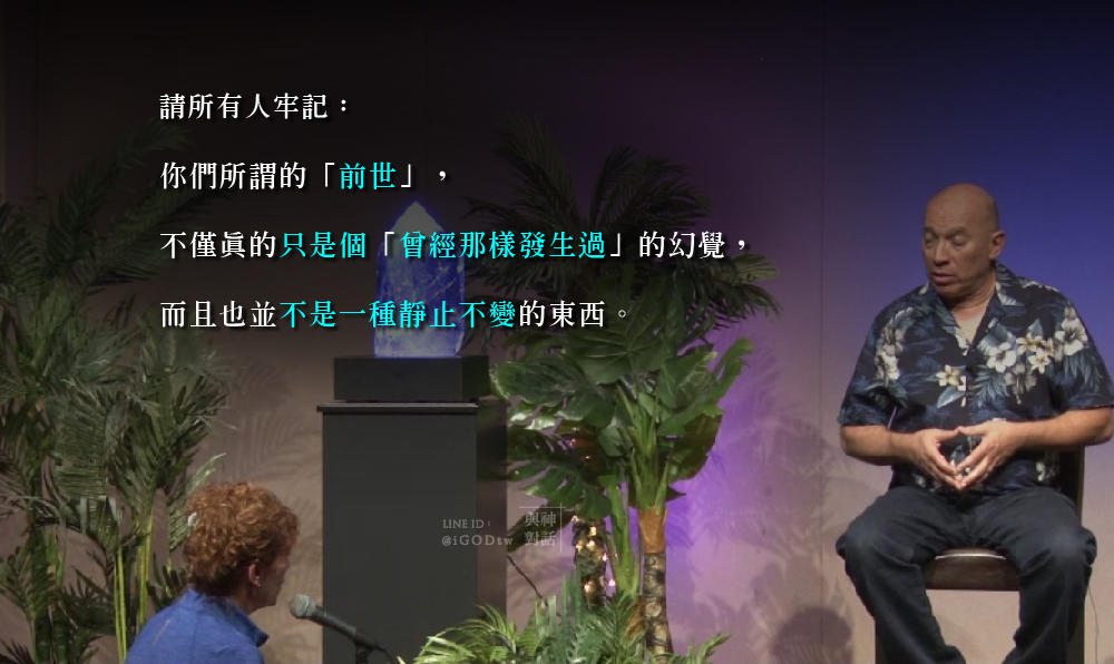 他們認為,那些前世已是過去永不改變的東西。其實,它是一種不斷隨著你們(當下)的改變,而不斷變動的東西。