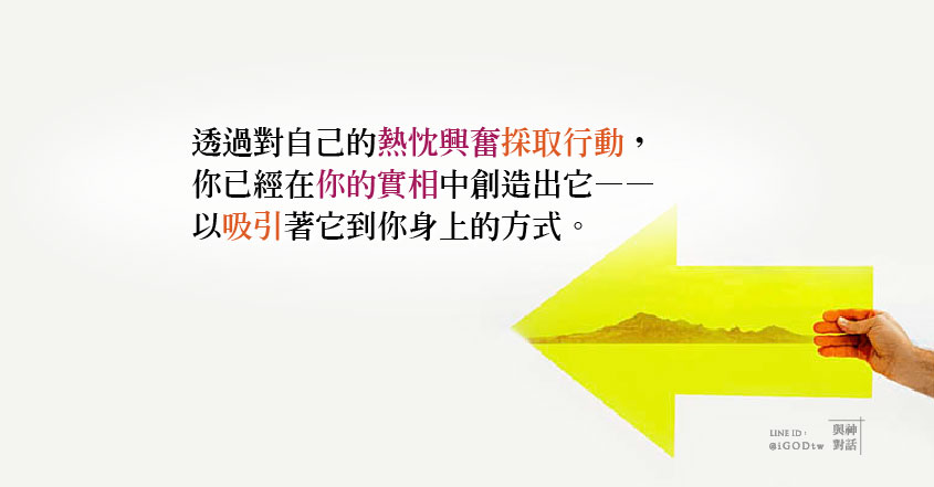 不是因為你期望的那個版本必須帶來有收穫的結果,而是因為你懂得「對自己最高熱忱興奮的事情採取行動,不論你選擇其中的哪一個,你都會被帶領到你需要到達的境地」的概念。因為那是驅動熱忱興奮運作的引擎。