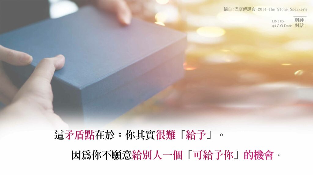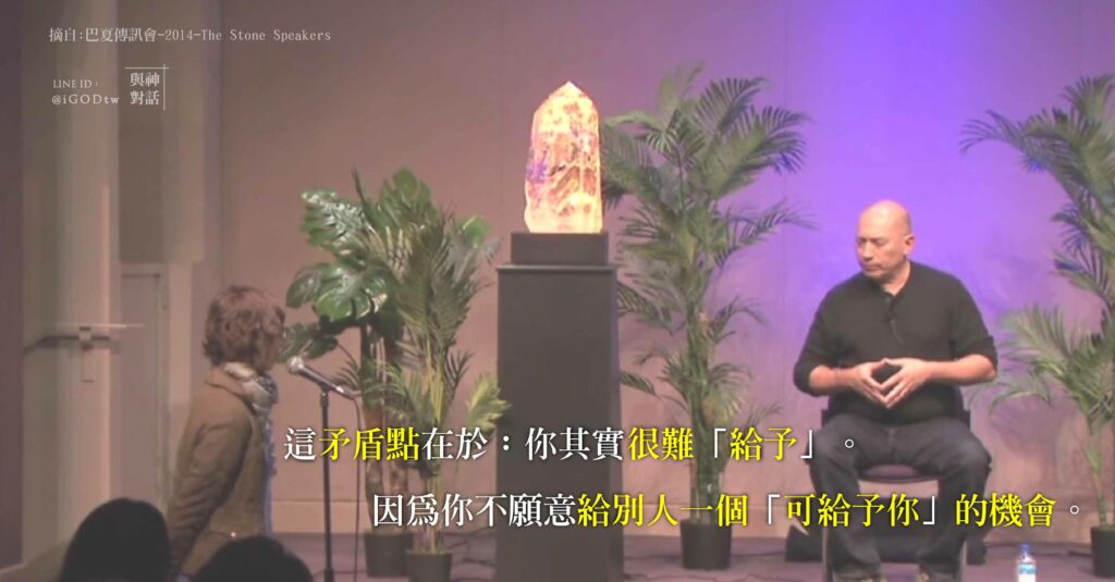 好的,那麼這矛盾點在於:你其實很難「給予」。你知道為什麼嗎? 因為你不願意給別人一個「可給予你」的機會。