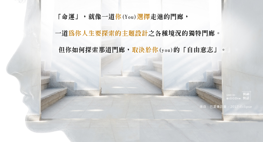 但,它取決於你們個人的「自由意志」,取決於「你將如何探索那道特定的門廊?」