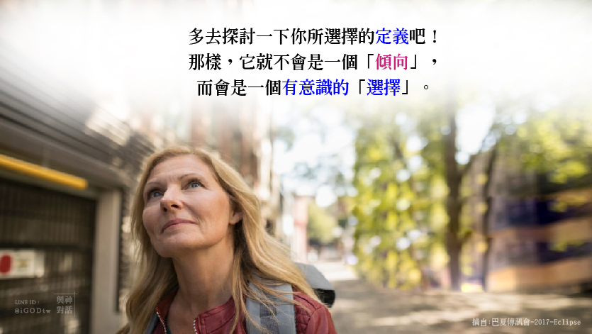 所以,多去探討一下你所選擇的定義吧!那樣它就不會是一個「傾向」,而會是一個(有意識的)「選擇」。