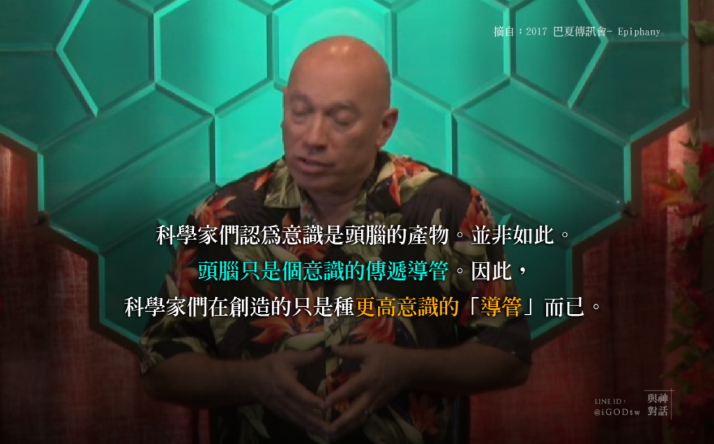不是這樣的。它只是個導管。科學家們認為意識是頭腦的產物。並非如此。頭腦只是個意識的傳遞導管。