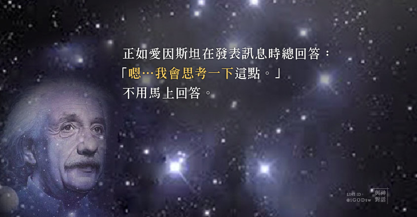 正如你們的愛因斯坦在發表訊息時,總回答:「嗯…我會思考一下這點。」