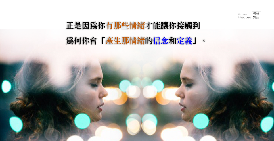 因為,正是那些情緒讓你去接觸到「為何你會產生那些情緒的定義」 (產生那情緒背後的信念和產生那信念背後的定義),不是嗎?