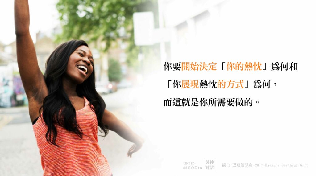 你要開始決定「你的熱忱」為何,以及「你展現熱忱的方式」為何。
