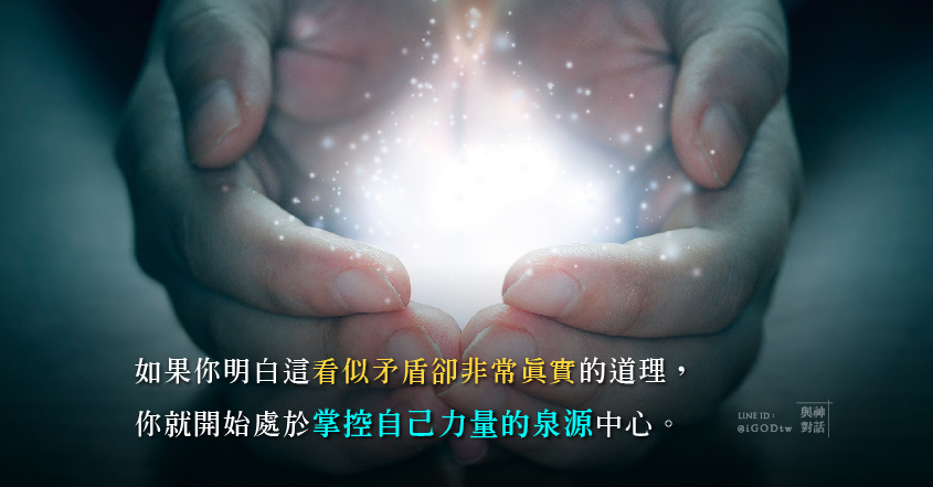 如果你明白這看似矛盾卻非常真實的道理,那麼,你就處於掌控自己力量的內在核心(處於與自己核心振頻和諧一致的連結狀態)。
