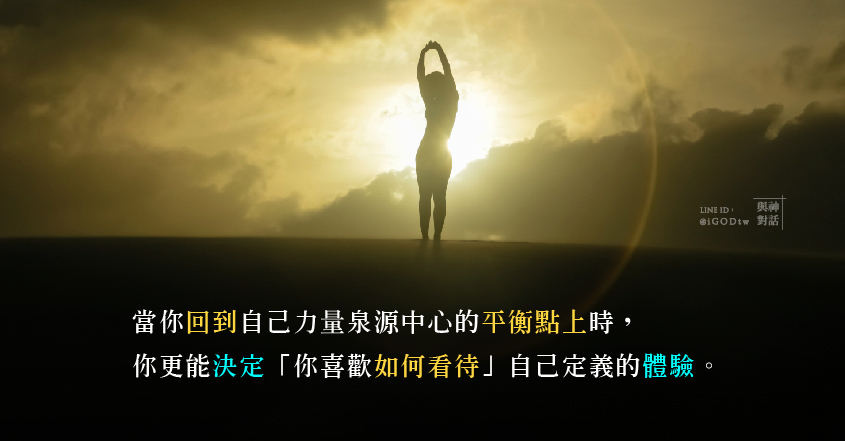 所以現在你要開始做決定了,現在,你已回到泉源中心的平衡點上了。