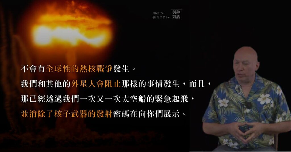 全球性的核武戰爭將滲透撕裂到其他的維度,那與你們無關,是你們無法去影響的。