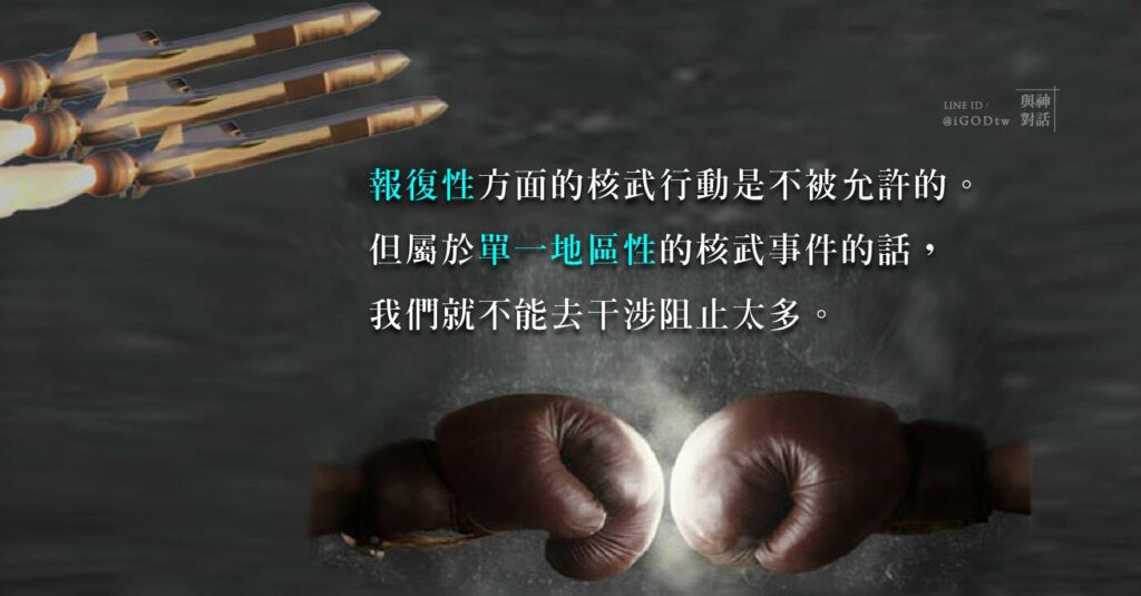 報復性方面的核武行動是不被允許的。但屬於單一地區性的核武事件的話,我們就不能去干涉阻止太多。