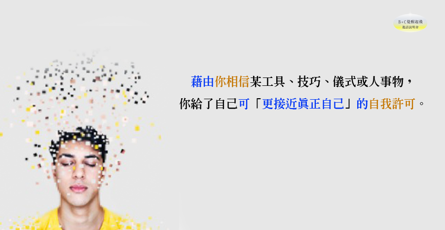 以此方式,藉由你相信那個工具、技巧、儀式、或物體,讓你給了自己一個可成為「更接近真正的自己」的自我許可。