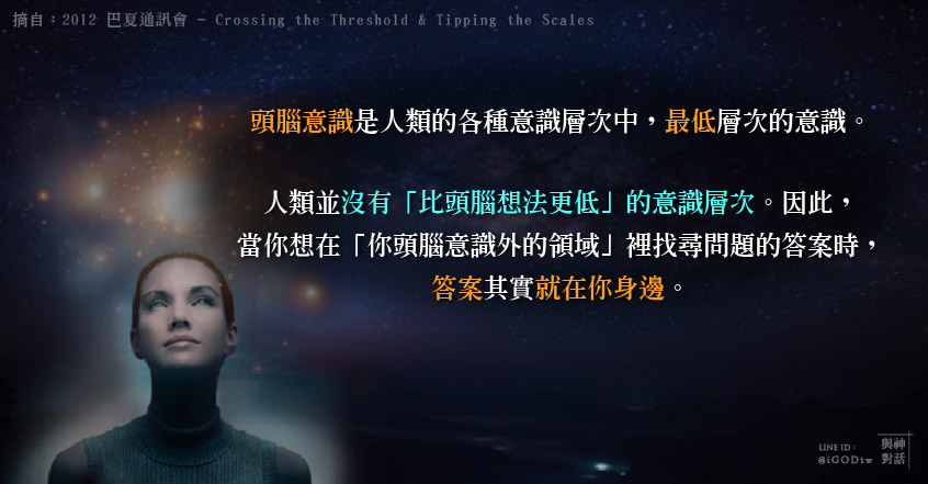 再次提醒你們,答案只會在「向上提升意識的光明處」找到,不會在意識低落的黑暗處,不會在振頻向下的陰影處找到。
