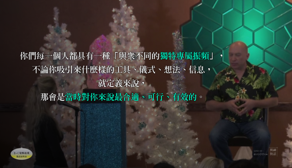 現在,正如我們已經常談論過的,關於你們每一個人,因為你們每一個人都個別地具有一種「與眾不同的獨特專屬振頻」的概念,顯然地,不論你吸引來什麼樣的工具、儀式、想法、信息,就定義來說,那會是當時對你來說最合適可行的(有效工具、儀式、想法或信息)。