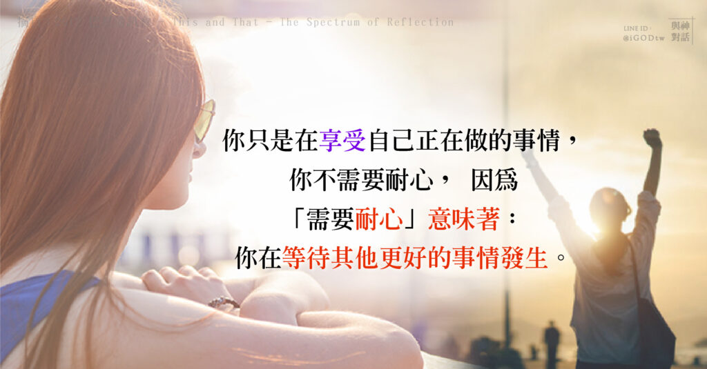因為他們從不會沒有耐心,因為他們除了處在當下在做他們有熱忱做的事情外,從不會想做其他的事物。
