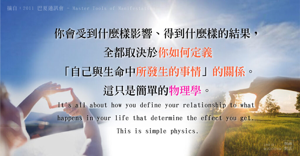 你會受到什麼樣影響、得到什麼樣的結果,全都取決於你如何定義「自己與生命中所發生的事情」的關係。這(不是什麼大道裡)只是簡單的物理學。
