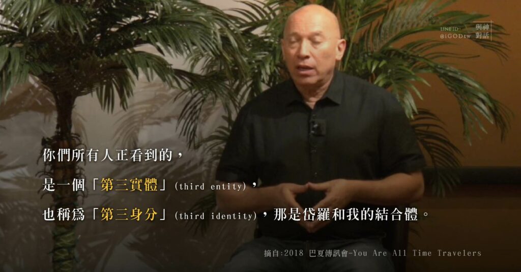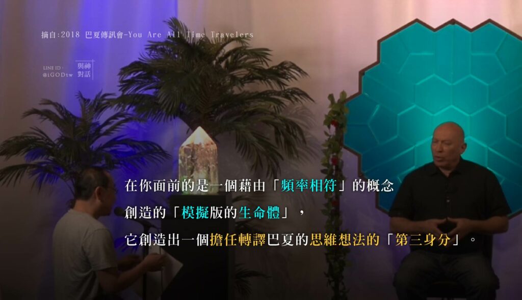 在你面前的是一個藉由「頻率相符」的概念創造的「模擬版的生命體」,而這模擬版的生命體創造出一個擔任轉譯我們(巴夏那端)的思維想法的「第三身分」。