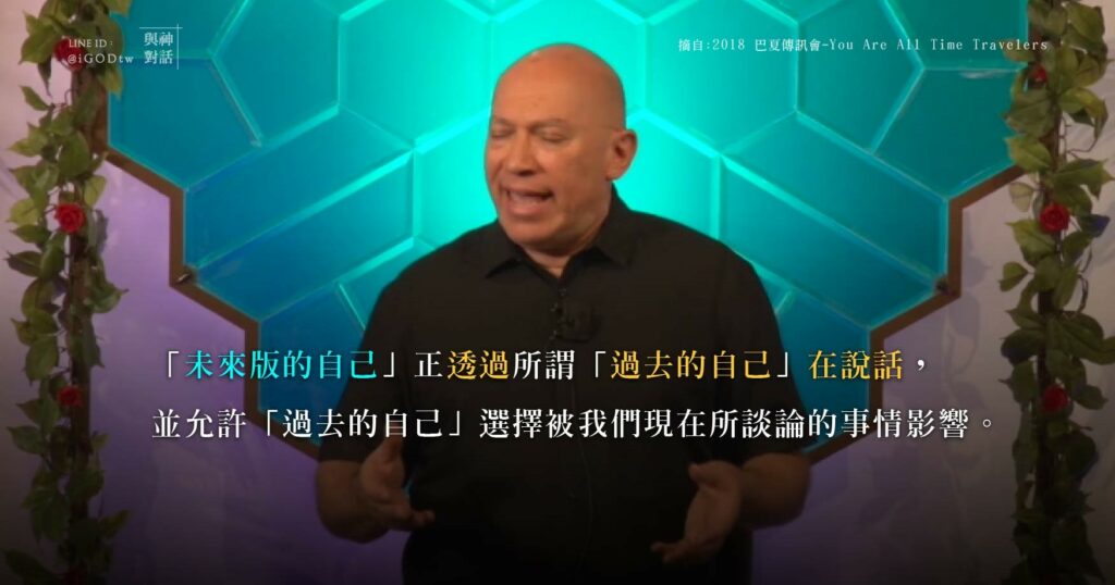 「未來版的自己」正透過所謂「過去的自己」在說話,並允許「過去的自己」選擇被「我們正在談論的事情」影響,對吧?