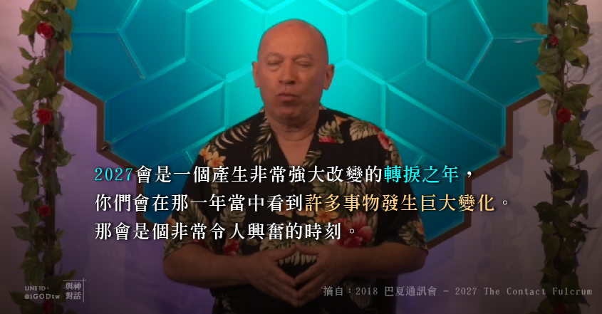 (此段對話前面巴夏說,地球將於2050年之前轉變為一個真正和諧的人間天堂…)…因此,2027會是一個產生非常強大改變的轉捩之年,你們會在那一年當中看到很多不同的事物發生變化。那會是個非常令人興奮的時刻。