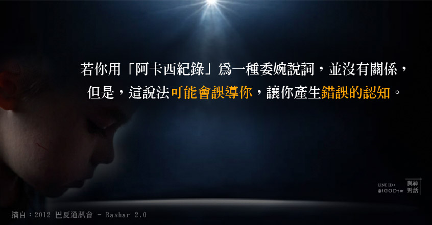 所以說,若你用「阿卡西紀錄」為一種委婉說詞,並沒有關係,但是,你明白嗎,這說法可能會誤導你。