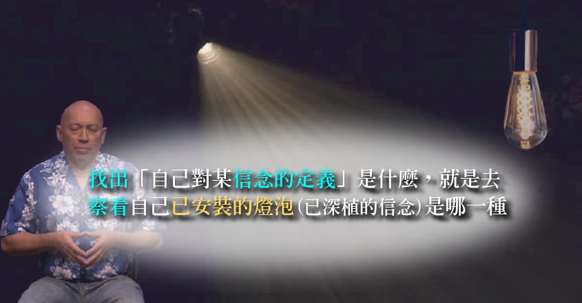 開始把那「負面信念燈泡」轉鬆關掉,開始找出那負面信念的源頭,卸下那燈泡。因為,我再說一次,能量並非來自負面信念本身(信念本身並無能量)。