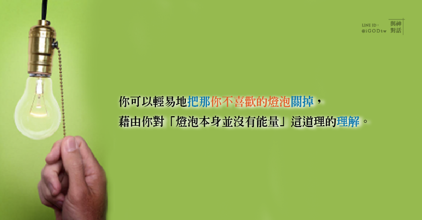 然而,你可以輕易地把那(你不喜歡的)燈泡關掉,藉由你對「燈泡本身並沒有能量」這道理的理解。