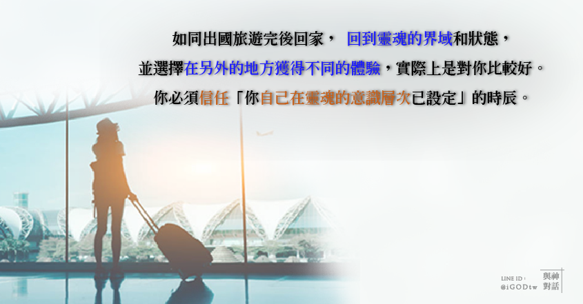 有時候,回到靈魂的界域和狀態(如同出國旅遊完後回家),並選擇在另外的地方獲得不同的體驗,實際上是對你比較好。