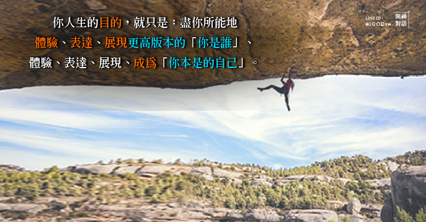 現在,你人生的目的,就只是(之所以活著的目的就是為了讓你能):盡你所能地成為你真實的自己(盡你所能地體驗、表達、展現更高版本的「你是誰」、成為「你本是的自己」)。