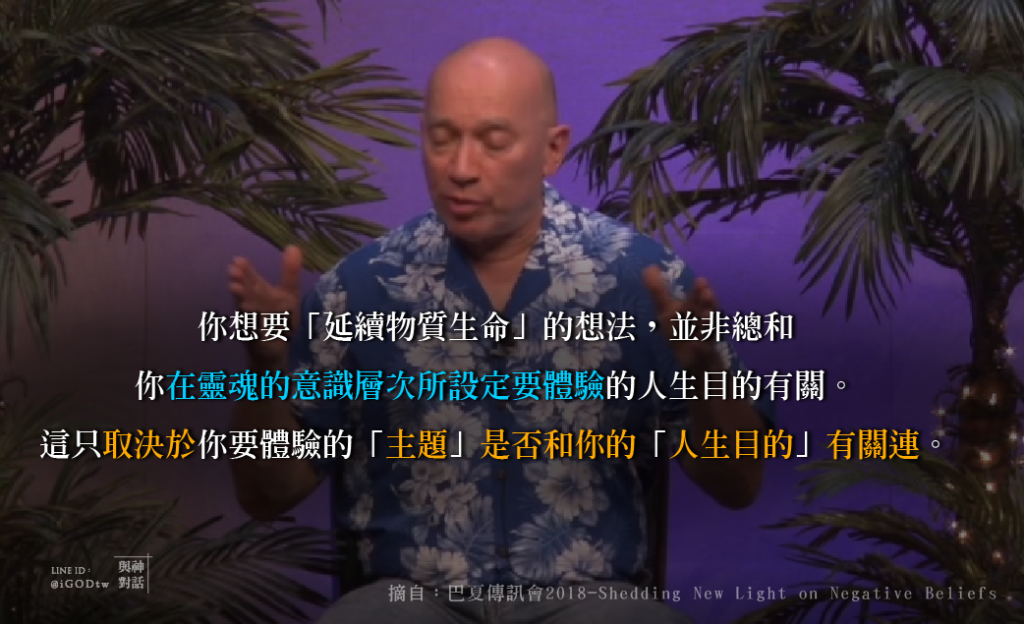 你想要「延續物質生命」的想法,並非總和你(在靈魂的意識層次所設定要體驗)的人生目的有關。