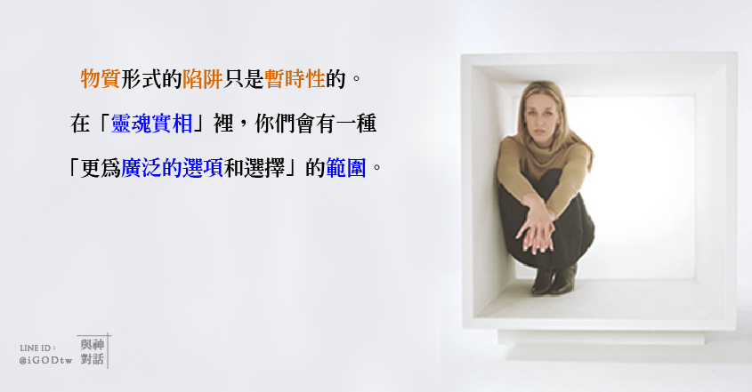 在靈魂領域中,他們不會有和物質領域一樣的「身陷圈套」運作機制,因為「物質實相」的定義(本質)就是這樣(要來讓人親身經歷體驗)。