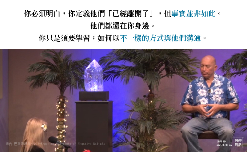 所以,這個概念是告訴你們:(在這痛失親人情境下) 你正在建立一種不一樣的關係,甚至建立一種和「你所認知的不一樣的物質實相」。