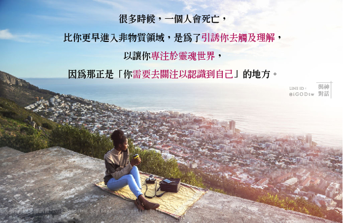 第一:很多時候,一個人會死亡,比你更早進入非物質領域,是為了引誘你去觸及理解,以讓你專注於靈魂世界,因為那正是「你需要去關注以認識到自己」的地方。