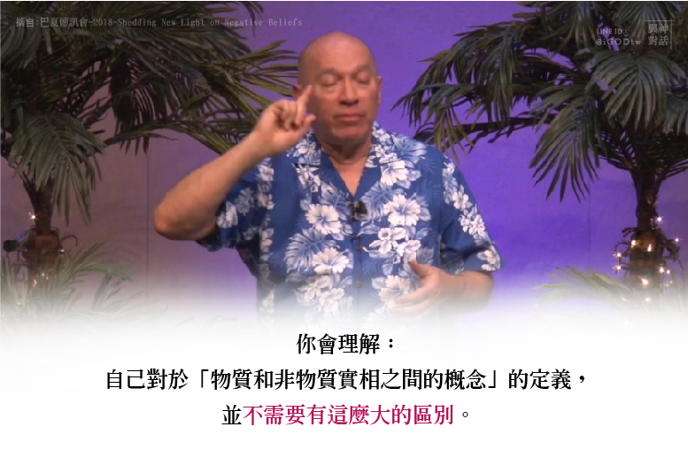 當你明白這更像是一場夢時,那麼,你會理解:自己對於「物質和非物質實相之間的概念」的定義,並不需要有這麼大的區別。你的物質實相和非物質實相,會像在我們(巴夏)的社會中那樣,開始融合在一起。你隨時隨地都能快速地與靈魂溝通對話。