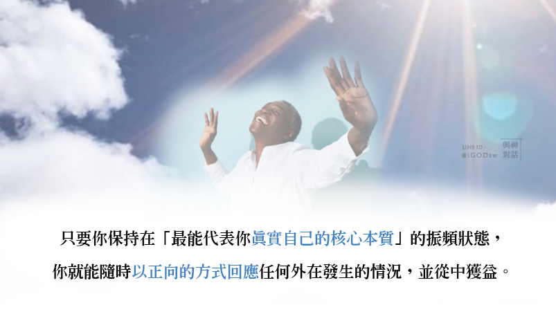 只要你保持在「你相信是最能代表你真實自己的核心本質」的振頻狀態,你就能隨時回應發生的狀況,你就能夠隨時以正向的方式回應任何外在發生的情況,並從中獲益。