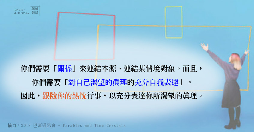 你們需要「關係」來連結本源、連結某情境對象。而且,你們需要對「自己的真理」完全充分的自我表達。