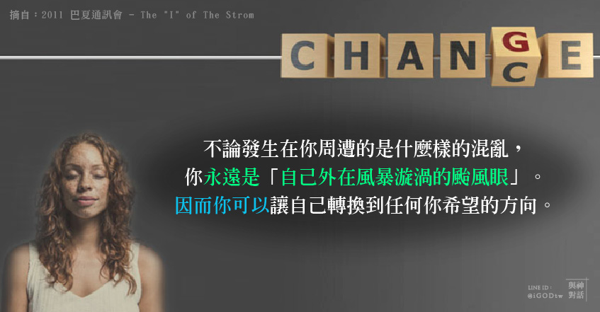 而不論在那周遭回璇中發生什麼樣的混亂,你永遠是「自己外在風暴漩渦的颱風眼」。