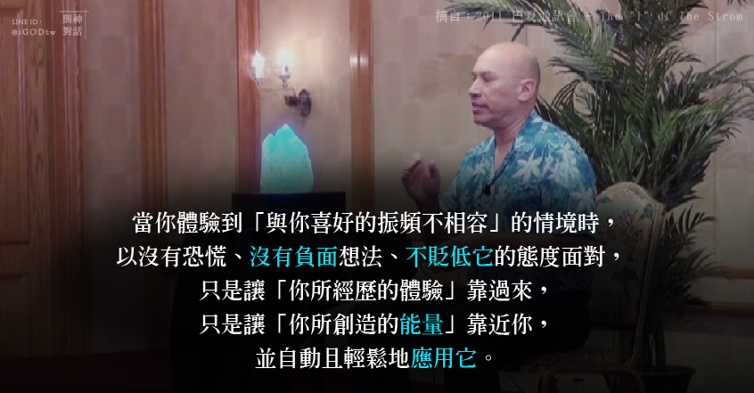 在任何你感覺到自己在那轉變的實相中有一種「跟你喜好的振動頻率不相容」的體驗時,