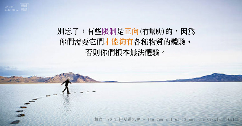 嗯,是的。雖然我沒說「視自己與對方是分離的」這件事本身是負面的。因為,別忘了:有些限制是正面(有幫助)的,你們需要它們才能夠有一種物質的體驗,否則你們根本無法體驗。