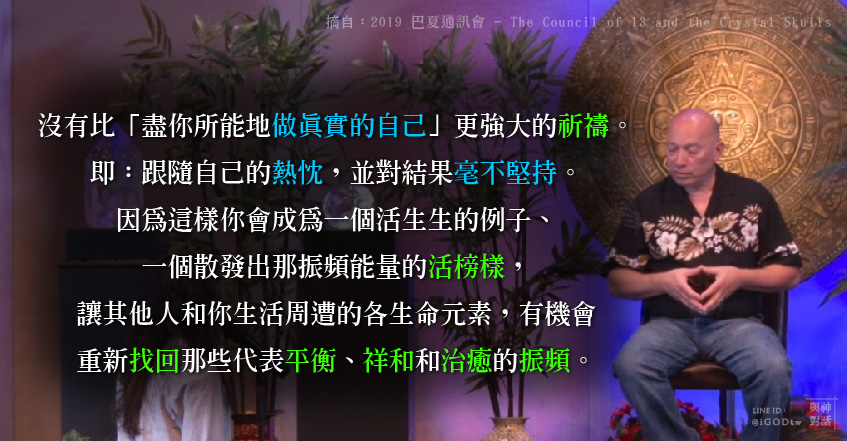 不是討論在這維度,在這環境周遭的的生命元素,而我們討論的特別是如何控制某些痛苦,以及渡過困境。在我的祈禱裡,有部分就如同剛才有人提到的,我們想「為我們的世代祈禱」。