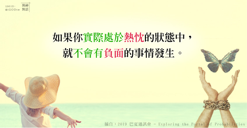 嗯,首先,你是否明白:如果你實際處於熱忱的狀態中,就不會有負面的事情發生?