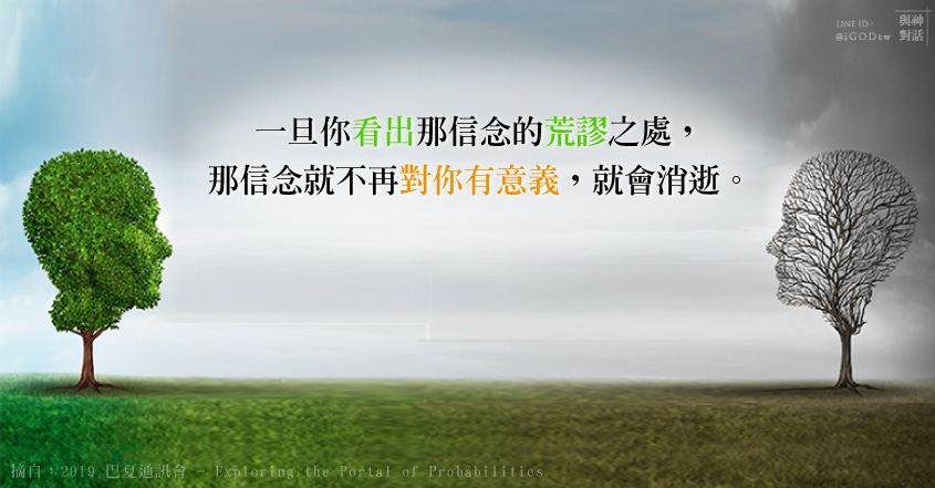 一旦你有意識地揭露出那(你抱持的)信念,它會顯得沒有道理(不再對你具有意義),它會顯得不合邏輯。