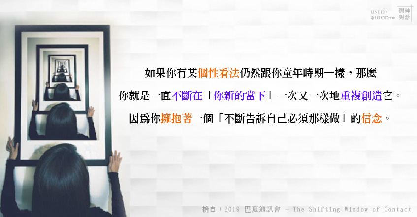 如果你有某(個性看法的)地方看起來仍然跟你童年時期一樣,那麼你就是一直不斷在「你新的當下」一次又一次地重複創造它,