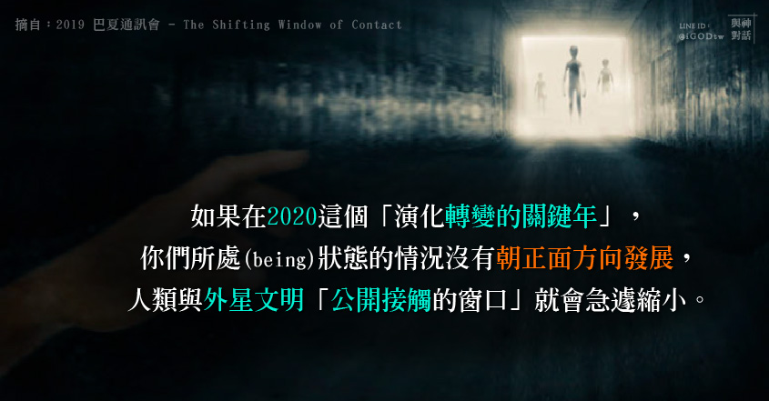 主要是因為,這是個(對於人類與外星文明的公開接觸是否能繼續向前進展)非常關鍵的地方——如果在2020這個「演化轉變的關鍵年」,你們所處(being)狀態的情況沒有朝正面的方向發展,「公開接觸的窗口」就會急遽縮小。