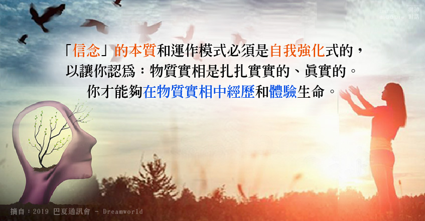 因為(就靈魂的意識層次)物質實相並非真正「真實」的,所以「信念」(這工具)必須要能夠讓你相信物質實相是真實的。