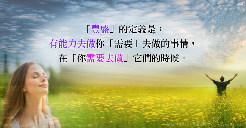 「豐盛」的定義是:在你「需要」去做某些「你需要去做的事情」的時候,有能力去做它們。就這麼簡單。