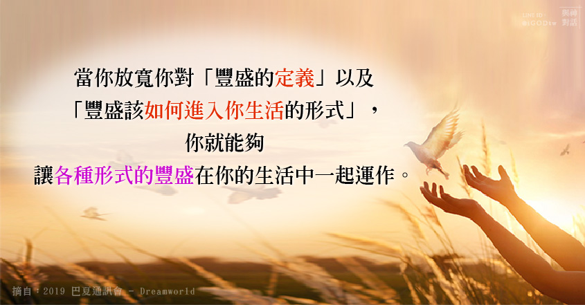 當你放寬你對「豐盛的定義」以及「豐盛該如何進入你生活的形式」,你就能夠讓各種形式的豐盛在你的生活中一起運作。