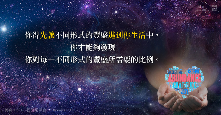 但你得先讓它們進到你生活中,你才能夠發現你對它們每一不同形式的豐盛所需要的比例。