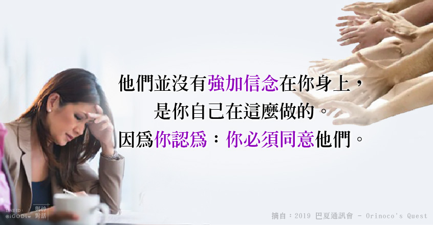 不,他們並沒有(強加信念在你身上),是你(自己在)這麼做。