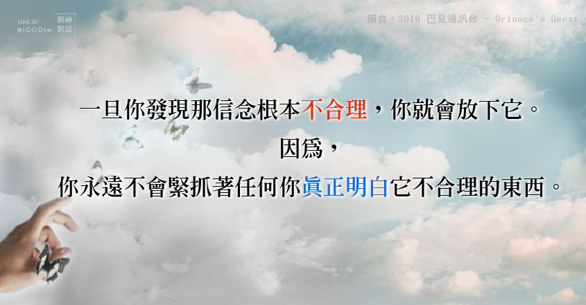 一旦你發現那信念根本不合理,你就會放下它。你們永遠不會緊抓著任何你們真正明白它不合理的東西。